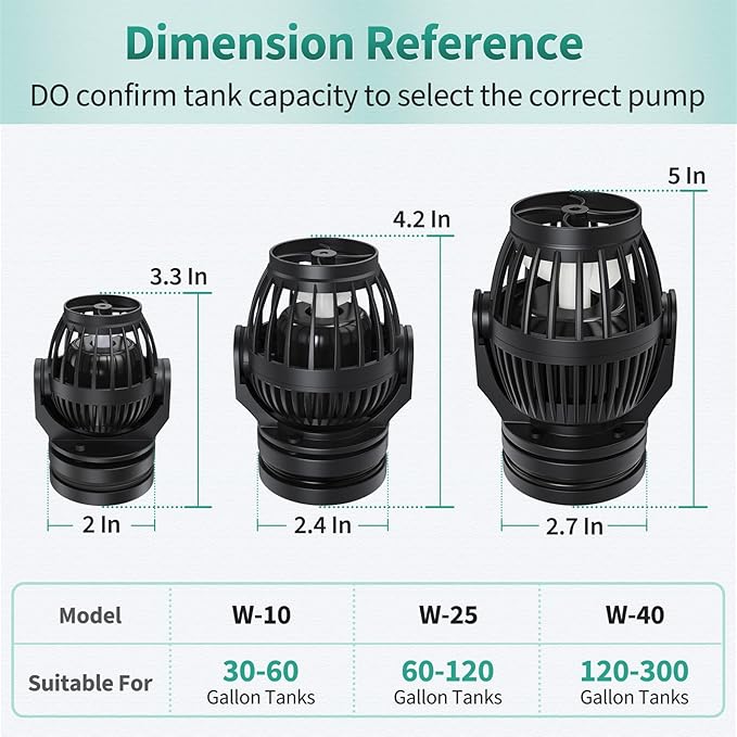 - For 120-300 Gal Tanks: ONLY SUIT 120-300 GALLON FISH TANKS (Not Fit For Tanks Less Than 120 Gallons). Max flow rate: 3400 GPH; Power: 40 W; Voltage: DC 24 V.