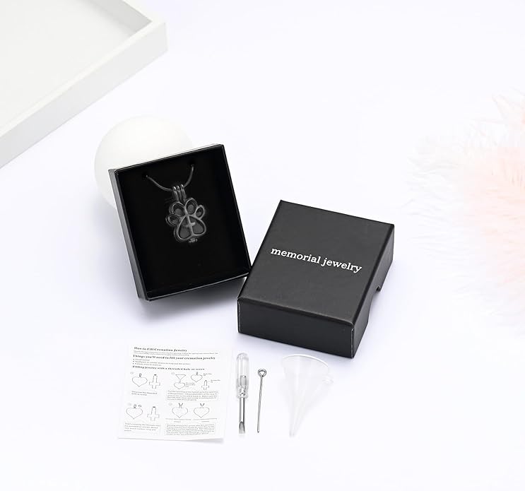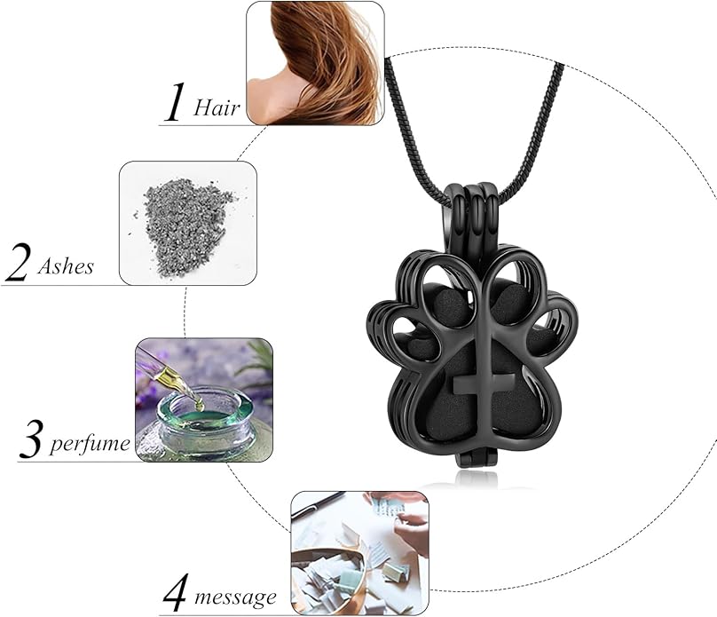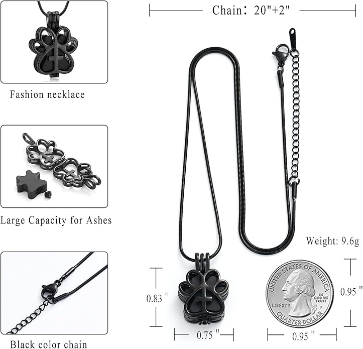 - 💕 Urn jewelry design💕 :The paw print urn pendant memorial ash keepsake cremation jewelry is hollow and can be open a small space to hold a small amount of a lock of pet’t fur, a loved one or pet’s ashes, soil, special messages, perfume, etc.