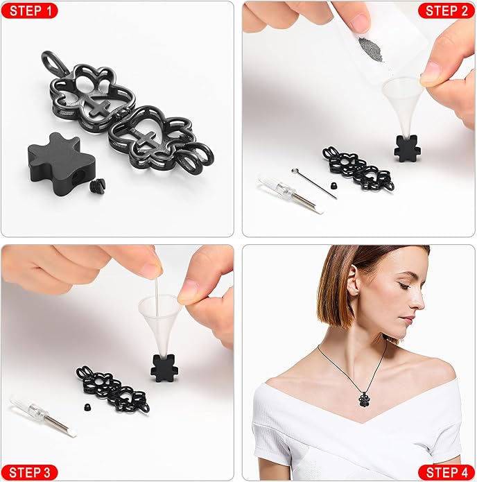 - 💕 Ideal Gift Choice 💕 :The cremation necklace is designed to hold urn ashes for pets, a small amount of a loved one ashes, soil, special messages, hair, perfume, etc. Fill it with anything that reminds you of someplace, someone or something special. It comes in a pretty black gift box. It is gorgeous to wear and great as a gift, suits for all age group.