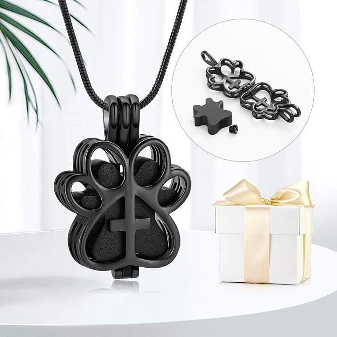 - 💕Pet urn necklace💕: It is always hard when someone loses a loved animal, it helps keep the memory of loved pet close to my heart! The hollow paw print shape design urn is full of love. The little urn inside can contain a small amount of ash
