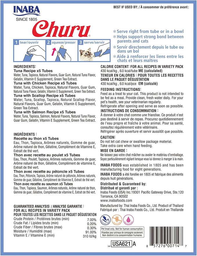 - MADE WITH WHOLESOME INGREDIENTS YOU CAN TRUST: Every Inaba product is made with yummy high-quality ingredients including farm-raised chicken and/or natural wild-caught tuna