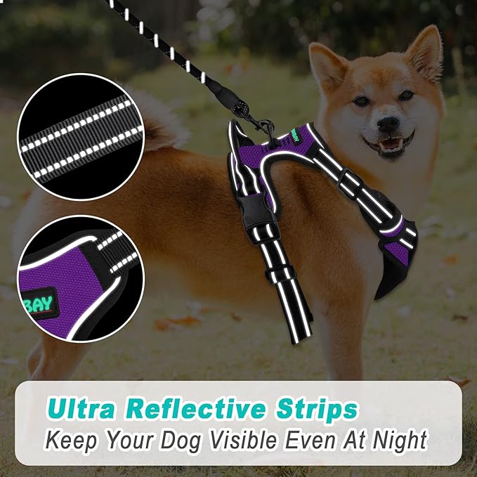 BARKBAY No Pull Dog Harness Large Step in Reflective Dog Harness with Front Clip and Easy Control Handle for Walking Training Running(Purple,L)