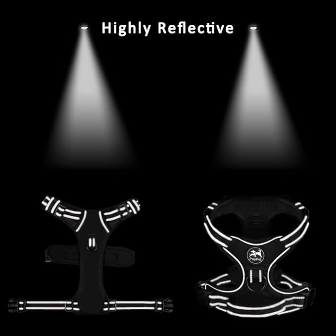 PoyPet No Pull Dog Harness, Reflective Comfortable Vest Harness with Front & Back 2 Leash Attachments and Easy Control Handle Adjustable Soft Padded Pet Vest for Small Medium Large Dogs (Mint Blue,M)