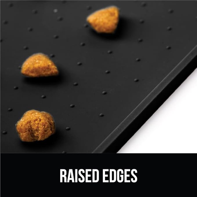 GORILLA GRIP 100% Waterproof Raised Edge BPA Free Silicone Pet Feeding Mat, Dog Cat Food Mats Contain Spills Protects Floors, Placemats for Cats and Dogs Water Bowl, Pets Accessories 16x10, Black