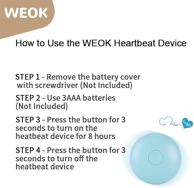 - Anxiety Relief: The heartbeat puppy toy simulates an atmosphere of accompany, it can help puppies and cats to relief the separation anxiety, loneliness, go through the tough time and adapt the new home or other complex environment. it is a good behavioral training aid toy which could comfort your puppies sleep better. Important tips for heartbeat device: Press and hold the switch long enough, it works; Press and hold the switch long enough, it stops.