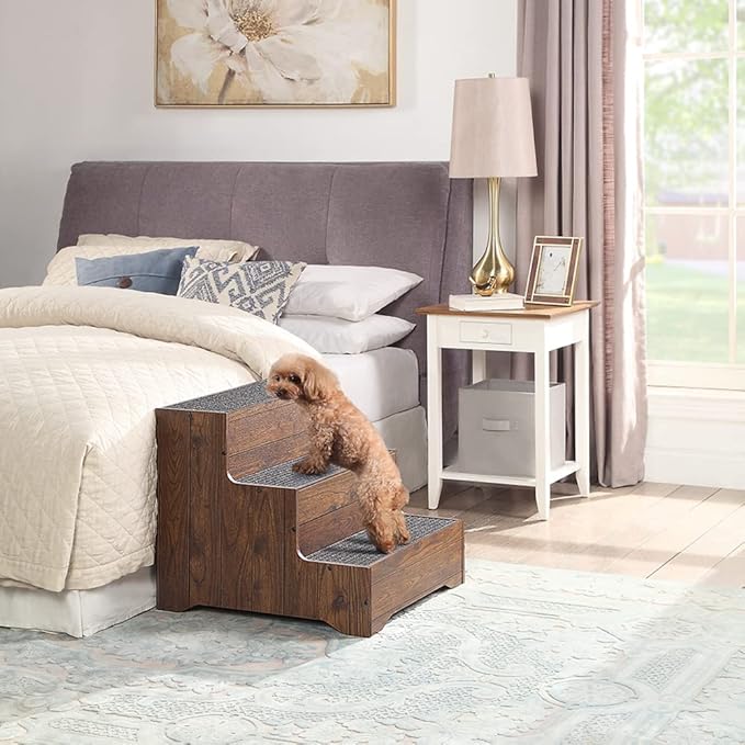 - NO SLIPPING, NO FEAR: Each step is equipped with anti-slip carpeting. At the bottom, anti-scratch pads protect the stairs from moving and floors from scratching. So, your little puppy or elderly dog will feel secure and confident at every step.