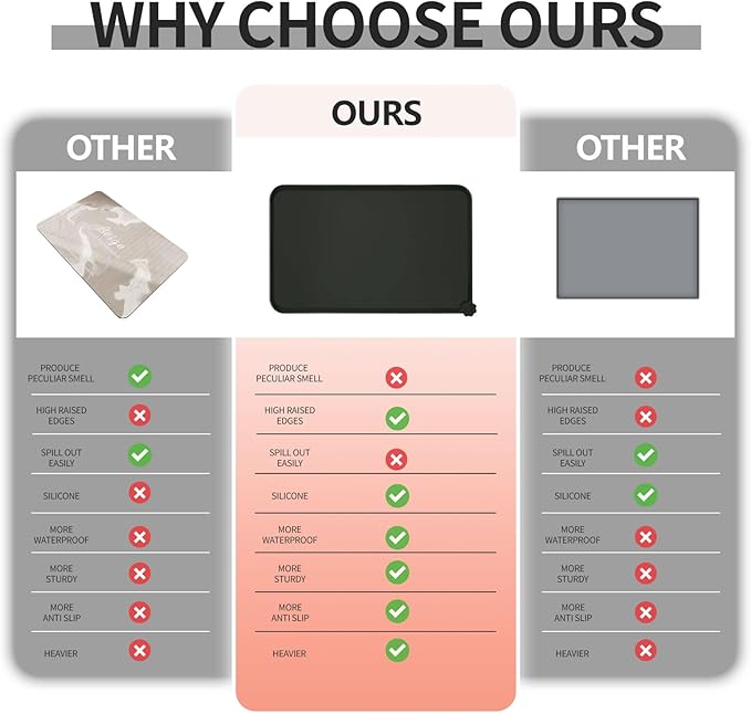 - Various sizes available: our pet mats come in 5 different sizes - 18.5" x 11.5", 22" x 14", 24" x 16", 28" x 18", and 32" x 24". Suitable for all kinds of pets, from puppies to large pets, choose the perfect size for your furry friends and avoid messy spills at mealtime