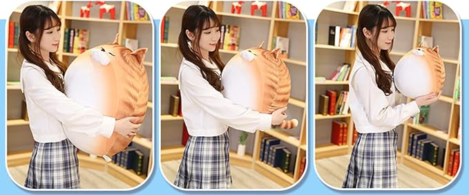 - DESIGN AND QUALITY TABBY CAT MATERIAL - The stuffed animal round Cat pillow has Adorable expression and exquisite detail design. Everyone will treasures this cuddly Tabby Cat plushies. The Tabby Cat plush pillow is made of safety breathable PPcotton friendly for kids. Floppy plush surface and double stuffed PPcotton inside of the Tabby Cat plush toy give you irresistible feeling when you hugging with Tabby Cat anime pillow. soft and cuddly, could be wash, safe for your kids.