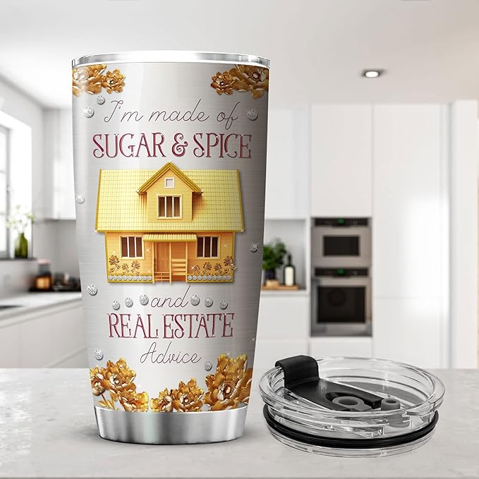 ZOXIX Realtor Coffee Tumbler Stainless Steel Mug With Lid 20oz Travel Cup Gifts For Realtors Female Flower Floral Housing House Girl Cute Tumblers For Women Salesperson Accessories