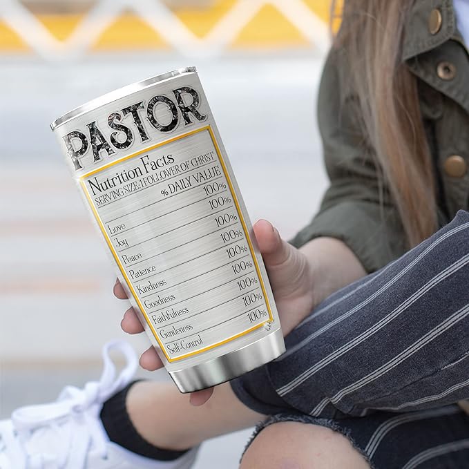 ZOXIX Pastor Tumbler For Men Nutrition Fact Cup With Lid 20oz Jewelry Style Christian Cross Stainless Steel Tumblers For Pastors Ministers Preachers Faith Gifts For Men Religious