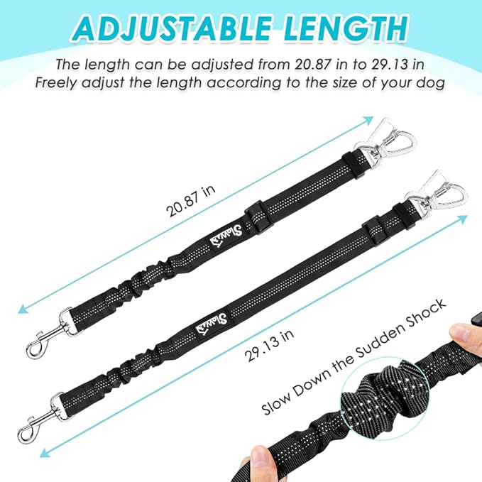 SlowTon Dog Seat Belt Harness for Car, Dog Car Harness Adjustable Mesh Breathable & Dog Seatbelt Safety Tether with Elastic Bungee for Small Medium Large Pets(Light Blue, Double Clip, XS)