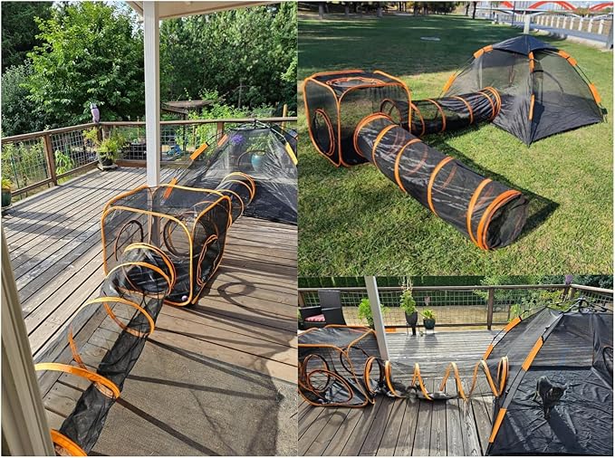 - KEEP YOUR CAT SAFE, HEALTHY AND HAPPY: Outdoor cat enclosures and cat tunnels are great spaces for cats (or kittens) to climb and play safely outside. No need to worry about traffic, neighbor's pets or wildlife. Your cat can safely enjoy the sun, green grass and fresh air.