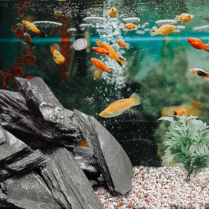 - Great Gift: Our natural amphibian slate rocks are suitable for aquascaping, aquariums, fish tanks, reptiles . Note: Flat stones are prone to cracking, we do our best to pack them but it's hard to avoid shipping damage
