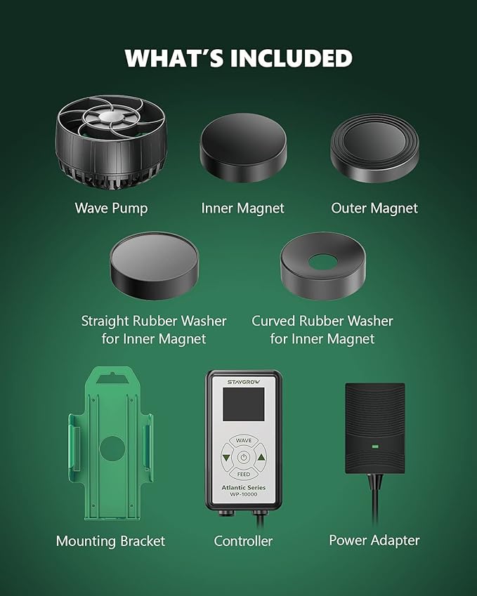 - What You Get: Aquarium wave maker, controller, power adapter, 2 x magnets. STAYGROW is so confident in our high-quality Wave pumps that we always stand by our products