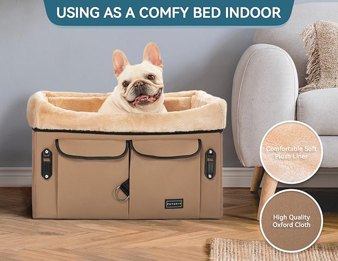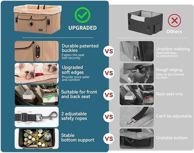 - [Thoughtful Design] The dog car seat is made of sturdy Oxford and comes with a washable pad. The upgraded mat has soft edges, suitable for pets to lay their head over the pet car seat for rest and relieve nervousness or carsick. With the dog booster seat’s window view, your anxious dog can enjoy travel without worry.