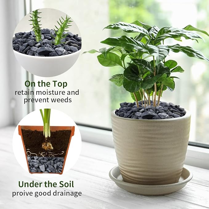 - 【Black Gravel】FANTIAN black rocks are natural with no polish or coating and no added fillers, dyes, oils, or substances. The color won't fade away through time and it is completely safe to use around pets and children
