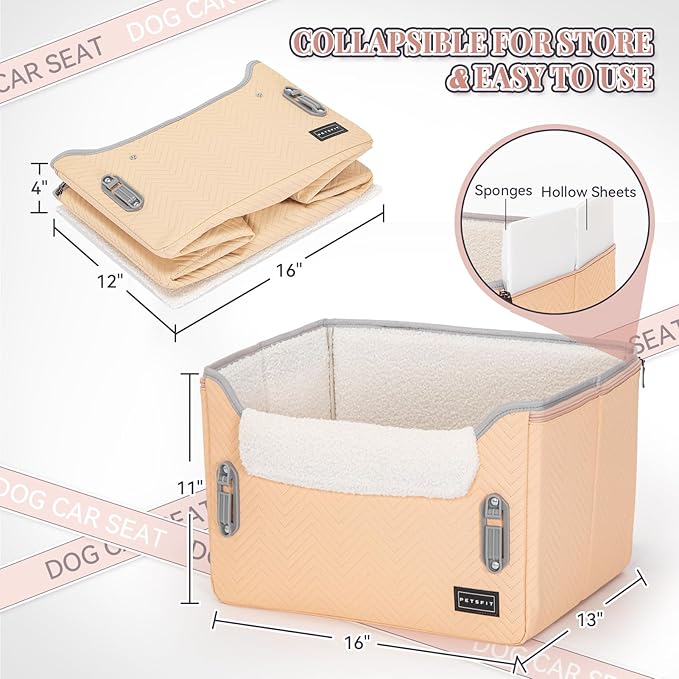 - [Sturdy Construction & Durable Materials] Crafted with high-quality hollow sheets, our car seat for dogs offer unmatched stability and durability, ensuring they won’t collapse under pressure. The addition of a soft imitation rabbit velvet lining and a well-designed pillow provides further comfort, making it perfect for pets who get nervous or carsick during rides.