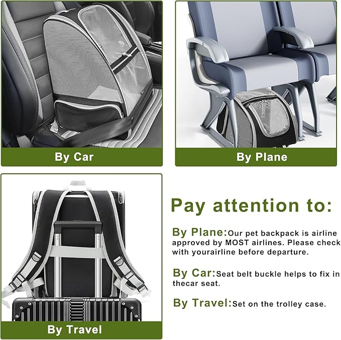 - 【Functional & Airline Approved】Our airline approved pet carrier can be conveniently worn over the shoulders, secured in a vehicle with a seatbelt, positioned on your luggage, or carried using the top handle. For any inquiries or concerns, please do not hesitate to contact our fantastic customer support.