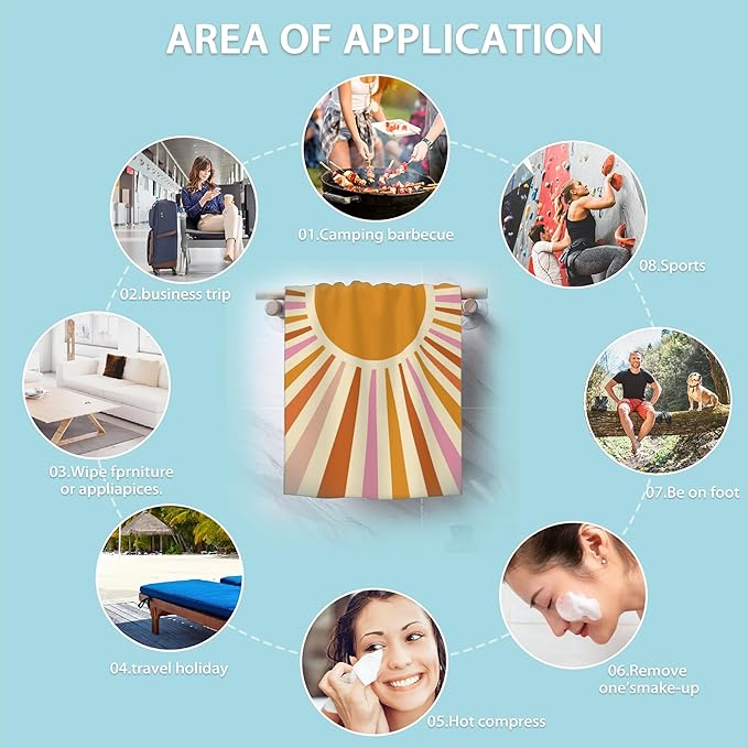 2 Pack Hand Towels for Bath,Retro Boho Sun Burst Decorative Towels Highly Absorbent Soft Towels for Bathroom Beach Kitchen Spa Gym Face Towel 14x28 Inch