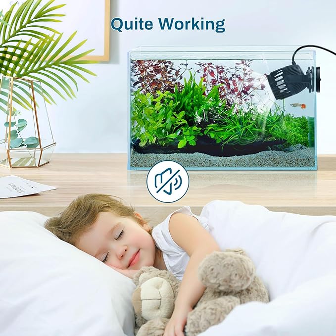 - 🐟【All-round Circulation】: The rotatable pump head generates water waves from multiple directions. Aquarium water pump totally controls the direction of the water flow, creates natural water movement, and quickly equalizes the water temperature;