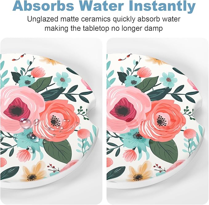 - 【Pragmatic Absorbent Coasters】Our products are not only stylish, but also have strong water absorption. Using unique technology, they have excellent water absorption. Ceramic car coasters are more absorbent than other coasters made of all-softwood, leather, cardboard, and rubber. Don't worry about cold drinks condensing and staining your car. Keep your car dry and clean.