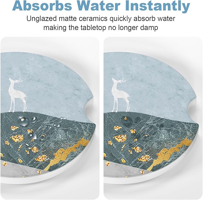 - 【Pragmatic Absorbent Coasters】Our products are not only stylish, but also have strong water absorption. Using unique technology, they have excellent water absorption. Ceramic car coasters are more absorbent than other coasters made of all-softwood, leather, cardboard, and rubber. Don't worry about cold drinks condensing and staining your car. Keep your car dry and clean.