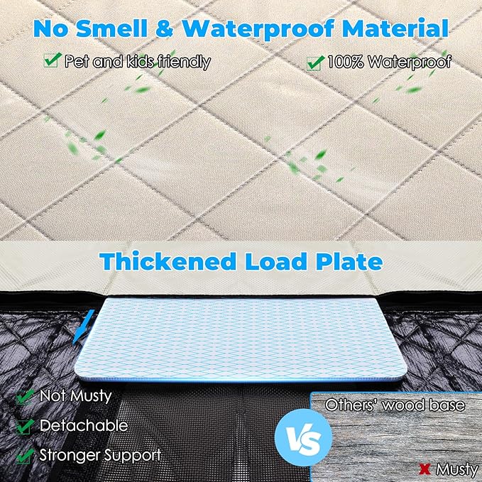 - No Smell Material: The dog car seat cover for back seat without terrible smell is friendly for pets and children. In an enclosed car space, no terrible smell is also important to keep you focused and driving safely, something that others' dog covers on the market ignore. The thickened PP hollow board plate is more durable than others' wood base