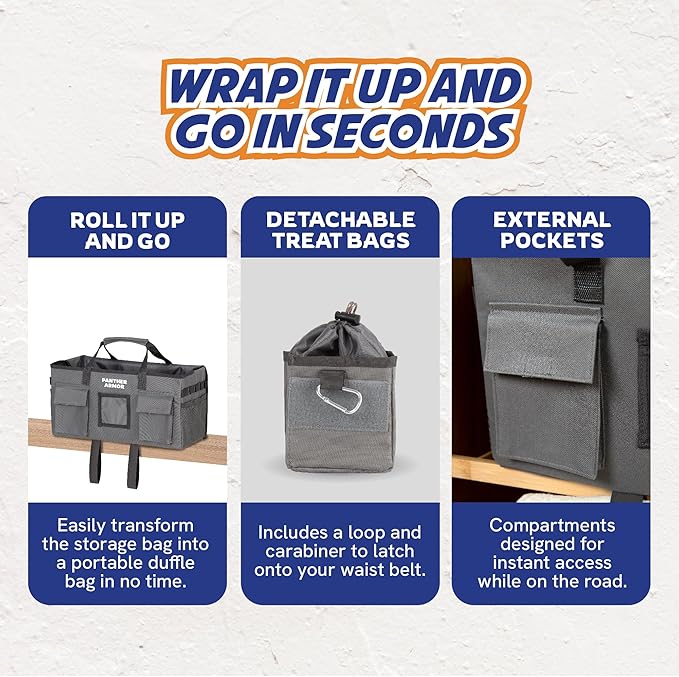 Panther Armor Dog Travel Bag- Hanging Dog Organizer & Pet Storage Tote Bag for Supplies,mWaterproof Door Storage & Closet Organizer, Food & Treat Container for Travel Accessories