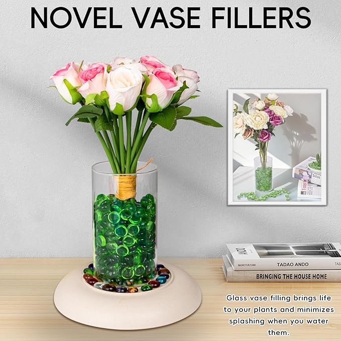- 【Widely Applied】These flat marbles can serve as vase fillers for centerpieces,decorative accents for pool or landscape bottoms, home décor, photography backdrops, gardens, weddings and parties, fire pit glass rocks, as well as glass beads for crafts.