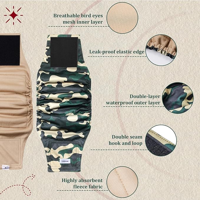 - Breathable and Comfortable: The lining surface of this male dog wrap is made of breathable and soft knitted fabric, which is skin-friendly and comfortable for your pet to wear without burden. The khaki-colored lining allows you to check your dog's urination in time and protects your puppy male dog's nappy from urine stains, which can affect the aesthetics and prolong the service life. The ones with shrink-stretch edges can fit the waistline and increase wearing comfort.