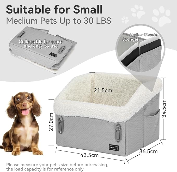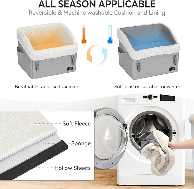- [Dual-Sided Comfort Cushion] The dog booster car seat medium sized dog featuring a unique cushion design with one side soft fleece and the other durable Oxford cloth, it meets different weather and pet needs. The cushion is detachable and washable. With comfortable fleece-lined edges, the car seat for dogs offers your pet a first-class comfort experience during rides