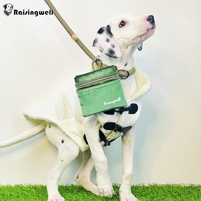 • Durable Tech Material: Raisingwell's dog treat training pouch is crafted from durable, washable, non-toxic vegan fabric, utilizing nano photonic crystal technology. In particular, the waterproof lining addresses the issue of difficult cleaning inside the training pouch.