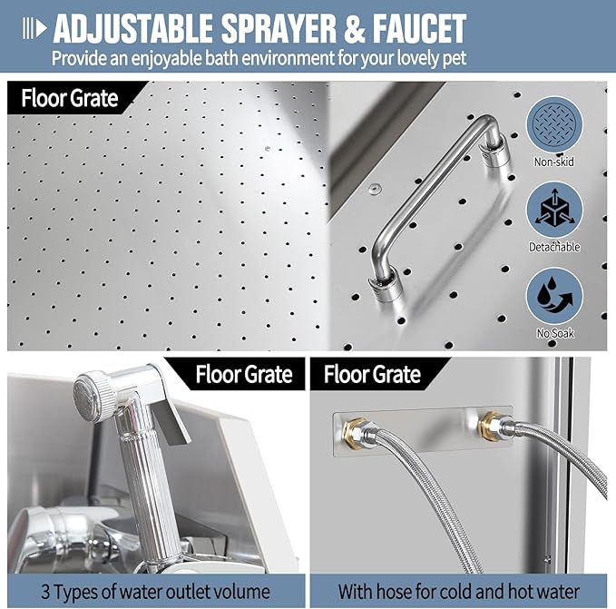 - 🐶Dog Washing Station: Constructed from premium 304 stainless steel, this bathing station embodies durability and corrosion resistance. Its sleek design ensures effortless cleaning, offering not only a pet bathing haven but also a functional daily sink
