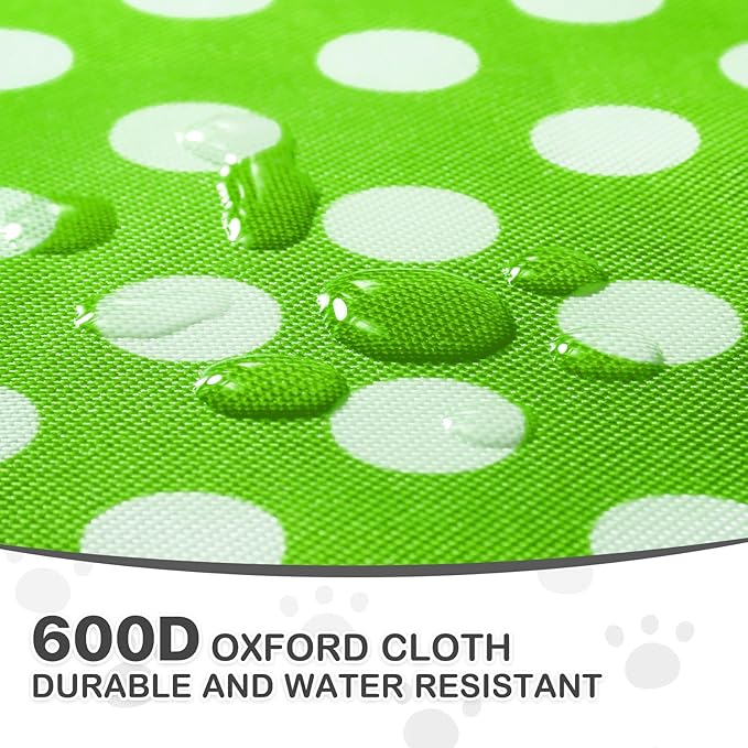 MoNiBloom 4 Wheels Pet Stroller, Easy-Fold Umbrella Shaped Dog Cat Jogger Stroller w/Storage Bag & Visible Mesh for Small/Medium Dogs Cats Lawn Green Polka Dots