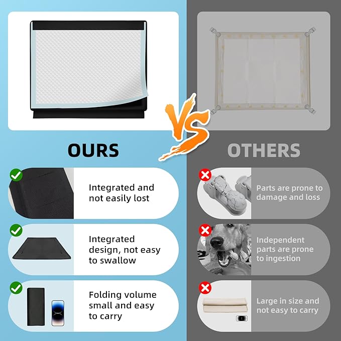 Dog Pee Pad Holder, Oxford Cloth Material, Fit 24"x24" Pad,Puppy Pad Holder, 6 Powerfu Magnetic Clips, Indoor Dog Potty, Black