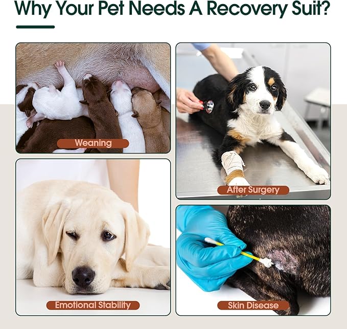 - E-Collar & Cone Alternative: Our dog surgical recovery suit is dog cone alternative. It can be used as post-surgery clothing and weaning clothing. It is also suitable for spay/neuter procedures, preventing your dog from interfering with the incision site