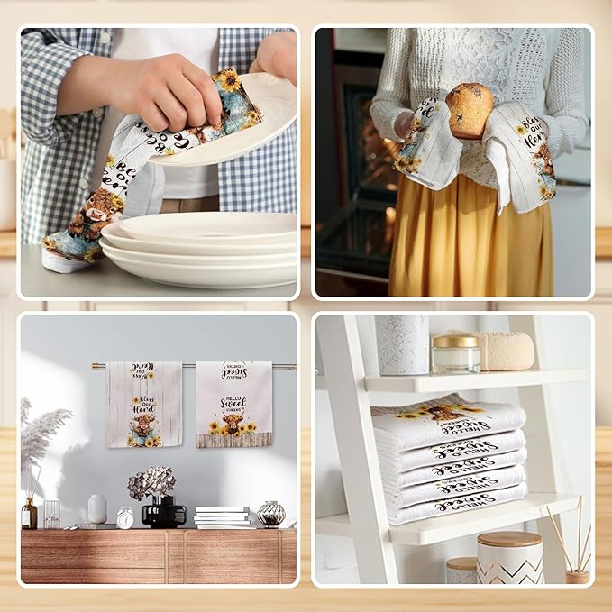 - Fun Gift: Highland cow-themed dish towels are the perfect addition to your kitchen. This is a fun and thoughtful gift. They can blend seamlessly with your home decor and coordinate with your other decorations, adding fun to your kitchen or bathroom