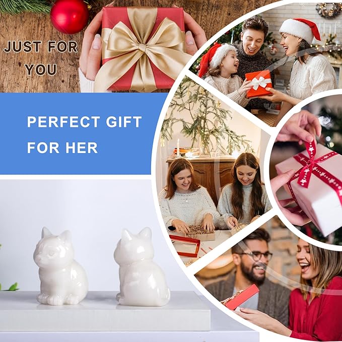 1.6 Inch Crystal Cat Statues, White Marble Cat Figurines, Healing Crystal Kitty Figurine Decor, Cute Lucky CatStatues for Gifts, Handcrafted White Jade Figurines for Home Ornaments