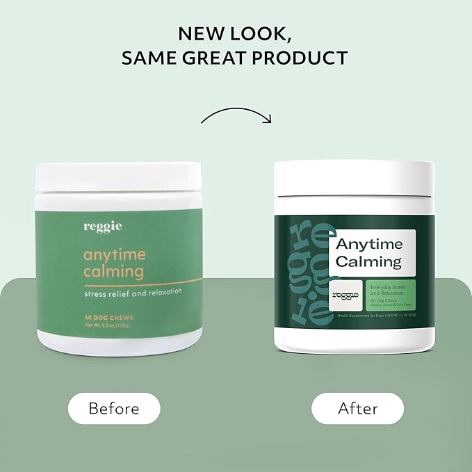 - POWERFUL, ALL-NATURAL ANXIETY RELIEF: Help your dogs become the best version of themselves. Reggie Anytime Calming chews help reduce stress & anxiety, calm hyperactivity & restlessness, and keep problem behaviors at bay without dimming your dog's unique personality.