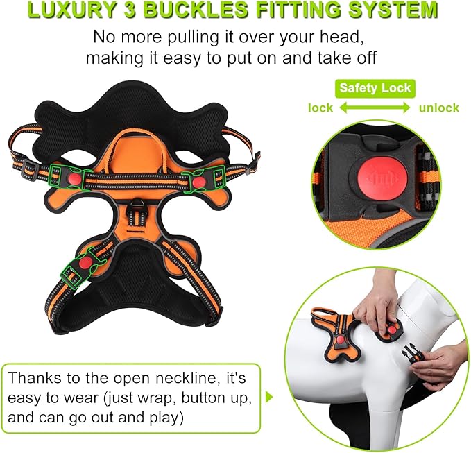 - 【 No Pull & Choke-Free Design 】Designed with your dog's comfort in mind, our No Pull Dog Harness is structured to distribute pressure evenly throughout your dog's body, preventing choking and discomfort during walks. This feature offers a more humane and safe way for you to control your dog.