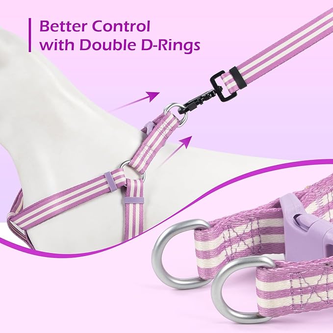 Stripe Step in Dog Harness for Small Dogs, Freedom Nylon Dog Halter Vests, Lightweight and Escape Proof Puppy Harness, Quick Fits for Small Medium and Large Dogs, Purple M