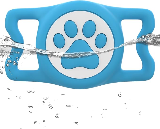 IP68 Waterpoof Dog Airtag Holder, Stretchy Silicone Full Body Covered Apple Air Tag Holder for Dog Cat Collar Fit All Width Collar (Blue, 1 Pack)