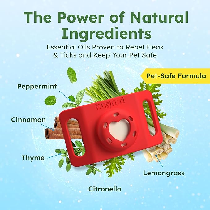 BugMD Paw Guardian Flea and Tick Prevention Pendant for Dogs & Cats with AirTag Holder | Plant-Powered Flea & Tick Control for Dog Collars & Cat Harnesses | Cat and Dog Tag with Air Tag Holder - Red