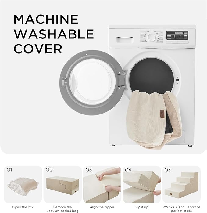 - Easy to Maintain - The removable cover is machine washable, making it easy to keep the stairs clean and fresh. Simply remove the foam core before washing. Note: Allow the foam to fully expand (24-48 hours) after unpacking to ensure maximum comfort and stability