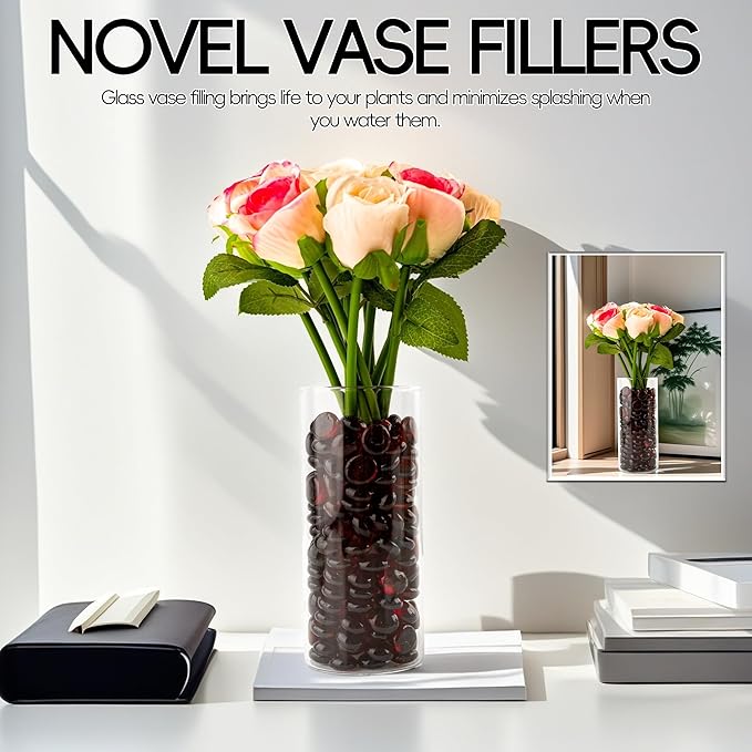 - 【Widely Applied】These flat marbles can serve as vase fillers for centerpieces,decorative accents for pool or landscape bottoms, home décor, photography backdrops, gardens, weddings and parties, fire pit glass rocks, as well as glass beads for crafts