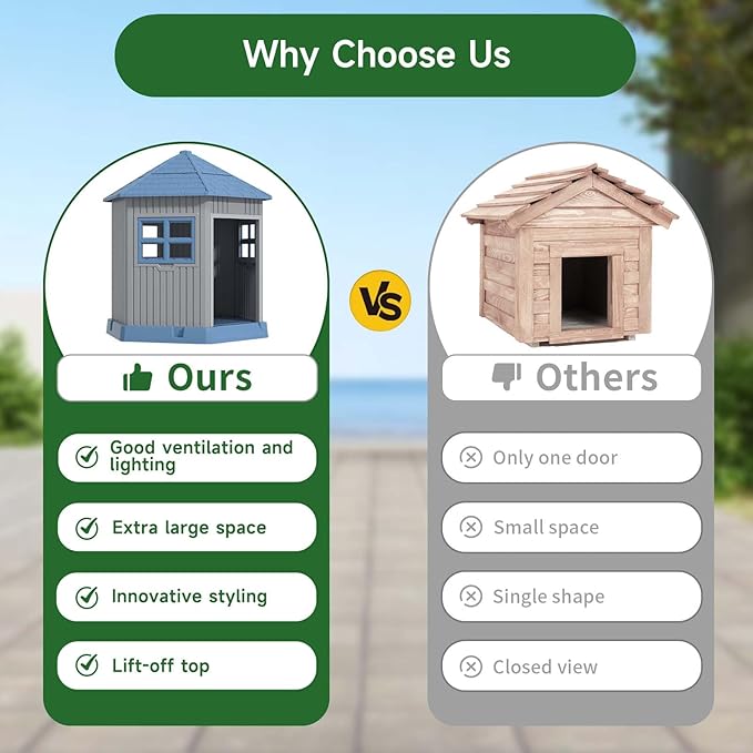 - STRONG AND DURABLE: Our plastic dog house is made of high quality resin material and fixed with buckles and screws. Sturdy structure and long service life provide a sturdy and durable place for your dog.