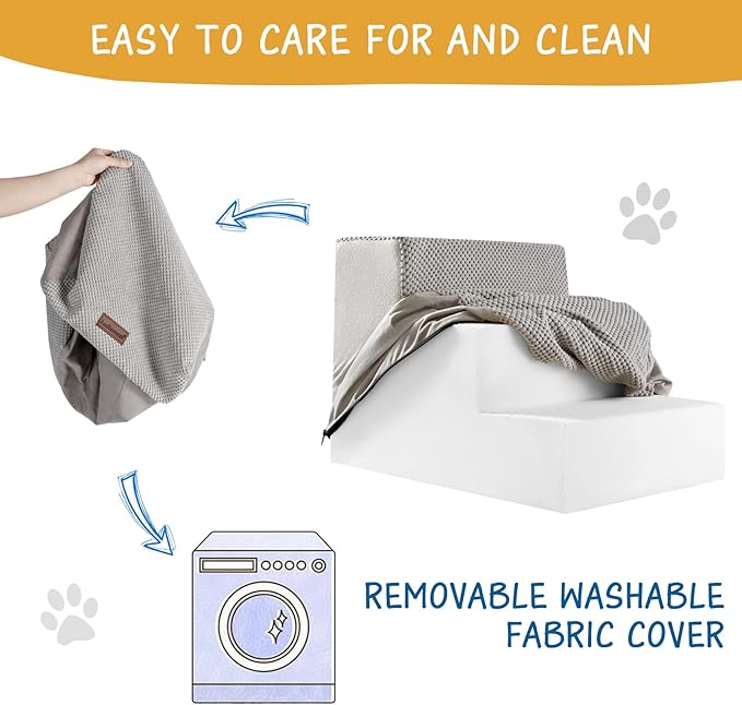 - Easy to Clean - The pet stairs feature a removable and washable cover, designed with a zipper for convenient hand washing or machine washing of the soft cover. Please refrain from machine washing or drying the foam core