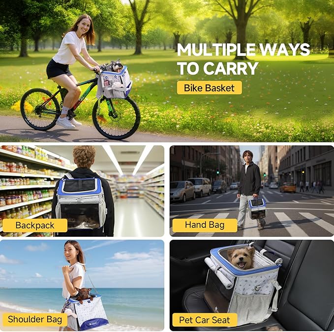 - LIULIUPET Cat and Dog Backpack Carrier, Breathable Cycling Pet Bag with Mesh Ventilation, Portable Outing Traveling Pet Bag with Top waterproof fabric for Small, Medium Cats, Small Dogs, Blue