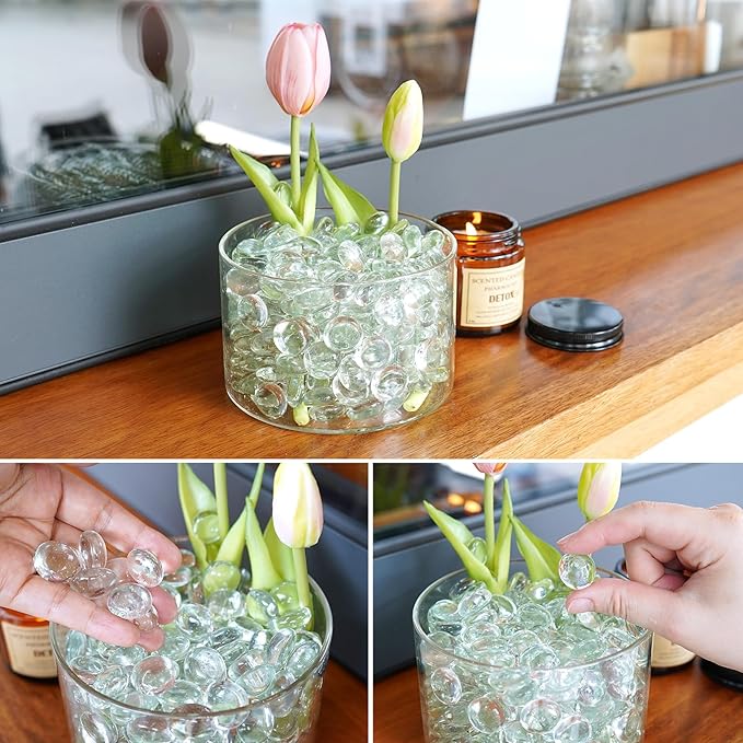 - Multi-Purpose Decor : Perfect as vase filler for weddings, events, fish tank gravel for aquarium landscapes, table centerpiece accents, or DIY art crafts, Resin jewelry, mosaics, epoxy coasters, mixed-media sculptures, candle holder bases.