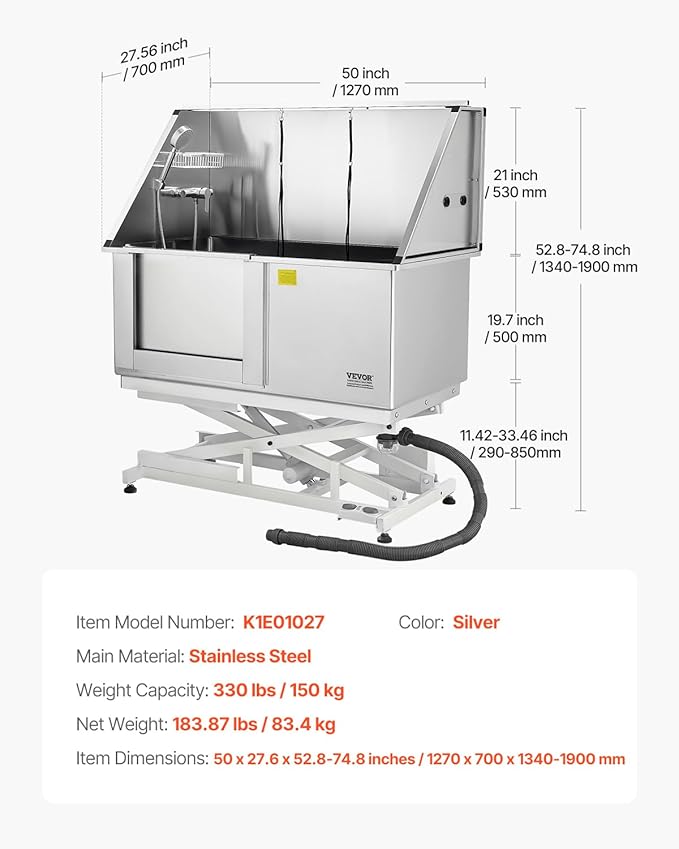 VEVOR Electric Lift Dog Washing Station, 50 inch Professional Stainless Steel Pet Grooming Tub w/PE Water Filter Board, Faucet & Showerhead Dog Bathtub Washing Sink for Multiple Pets (Left Door)